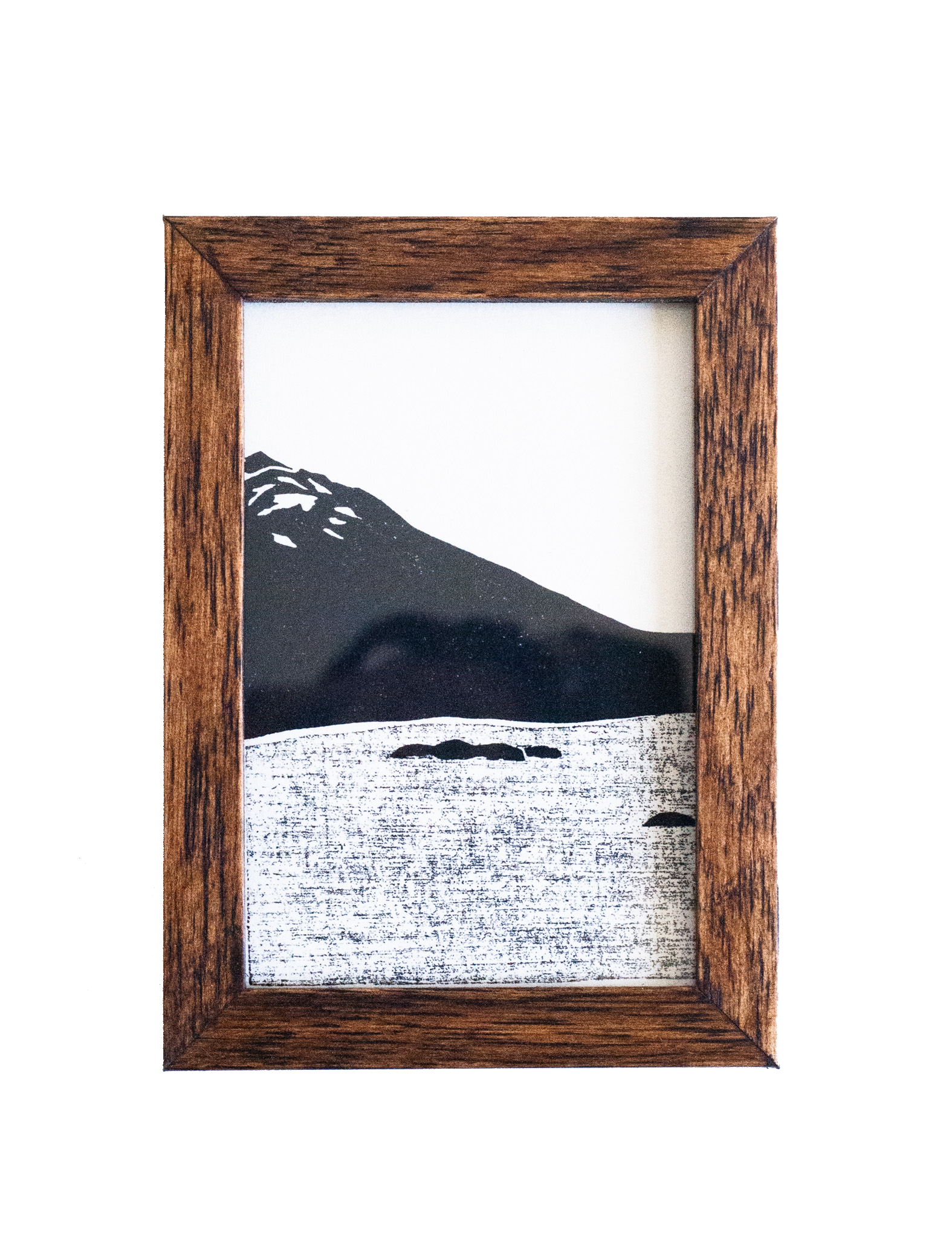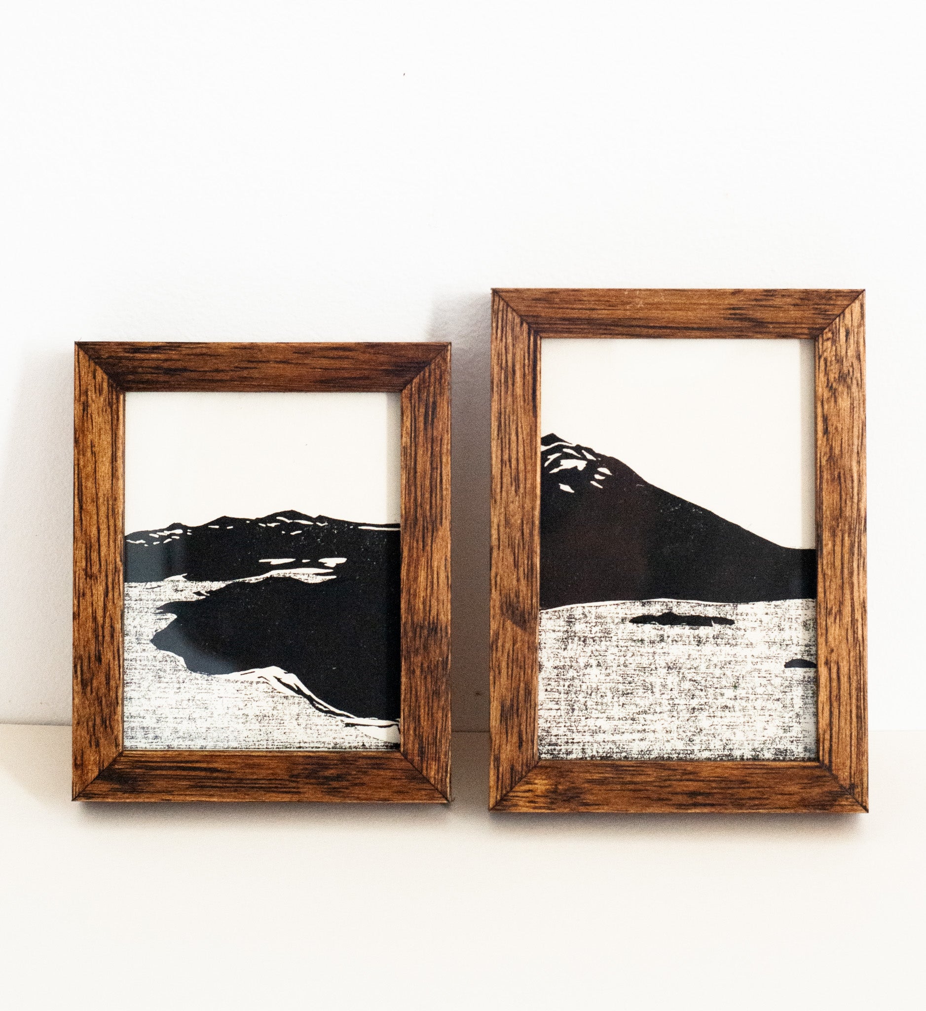 xilogravura e linoleogravura sobre papel | medidas com moldura 9,6 cm x 13,3 cm | moldura em madeira Caxeta tingida