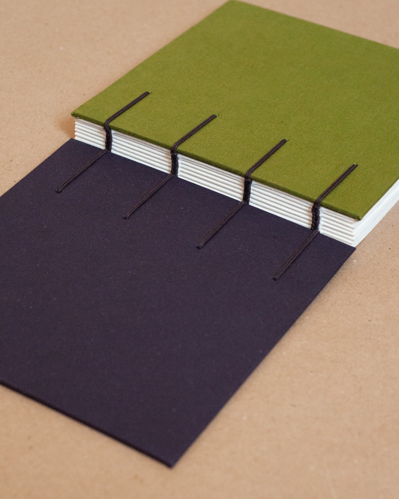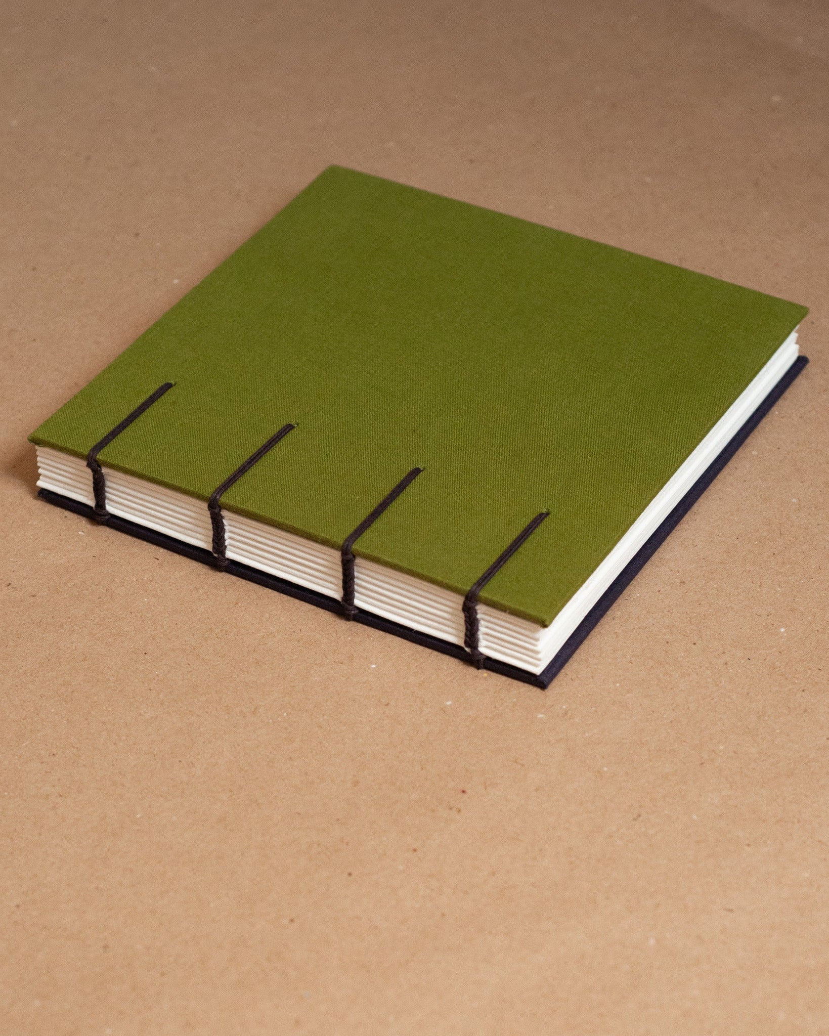 15cm x 15cm | miolo com 32 páginas em papel Canson Montval 300g - 100% fibra de madeira e livre de químicos | capa dura revestida em tecido 100% algodão e papel Savile Row Albergine | costura aparente Copta