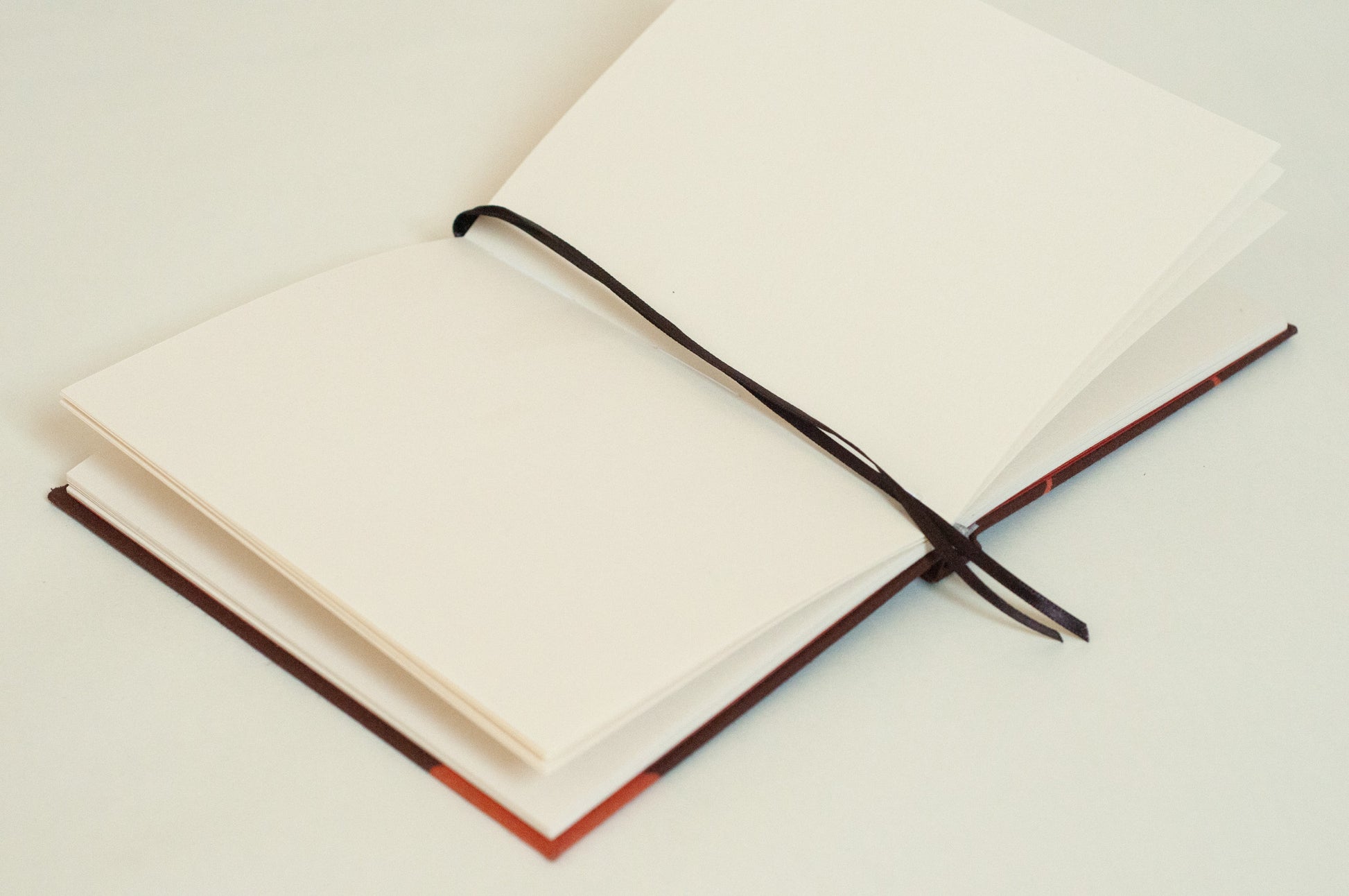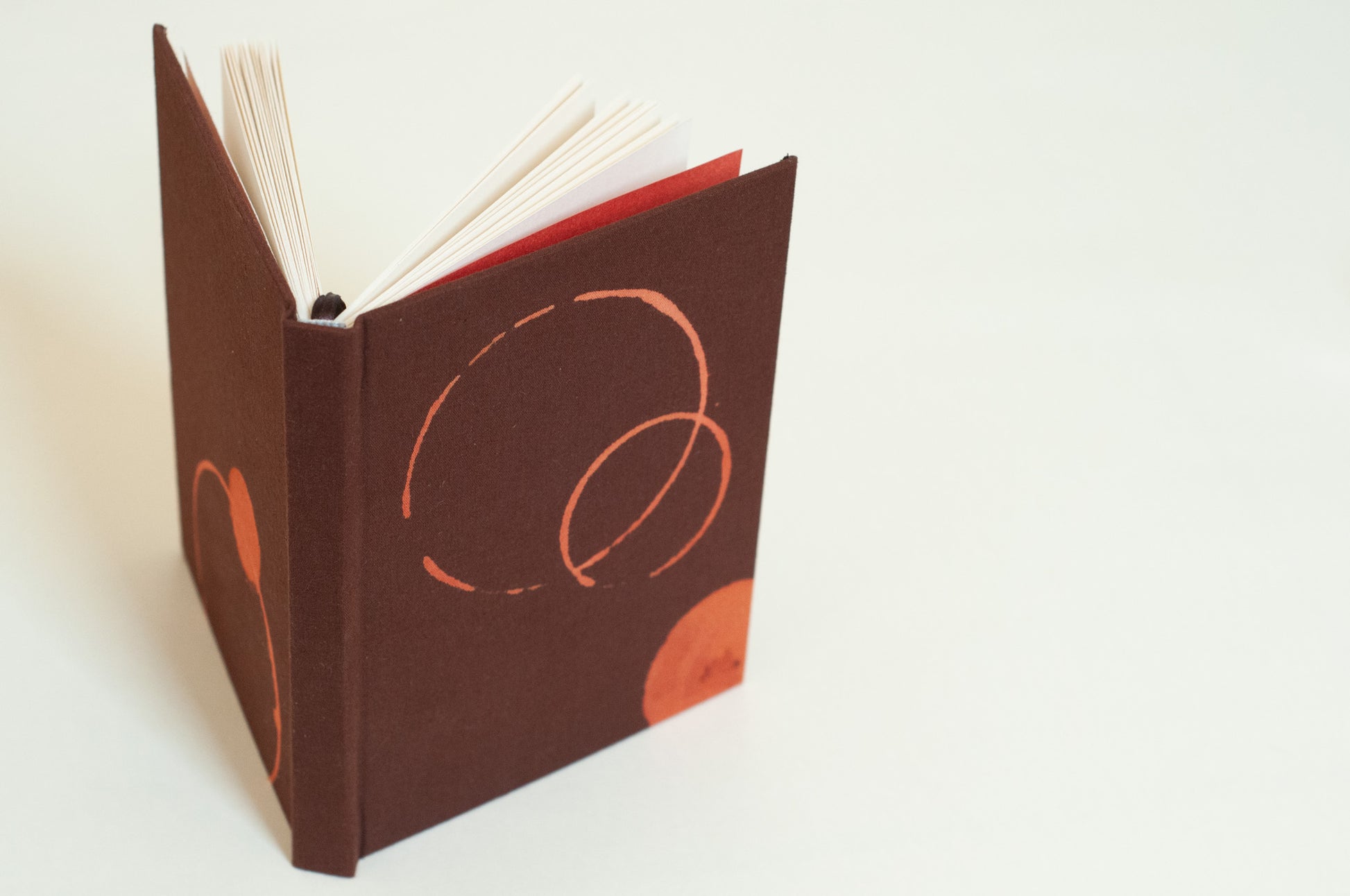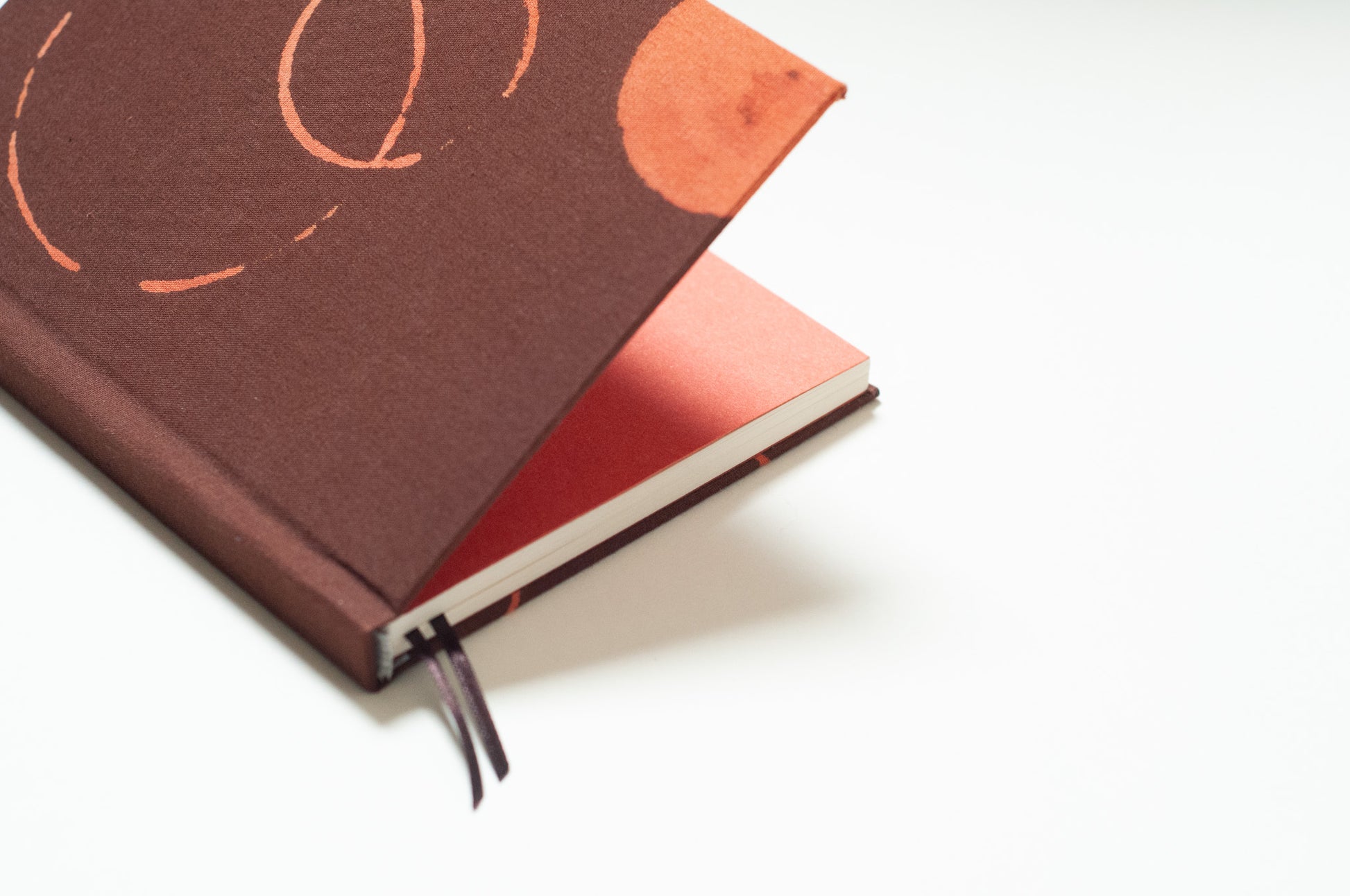 capa dura revestida em tecido 100% algodão | 13cm x 17cm | 96 páginas sem pauta em papel Pólen Bold 90g - livre de químicos e cor levemente amareladinha | guarda em papel Materica Terra Rossa 120g | duplo marcador de páginas em cetim