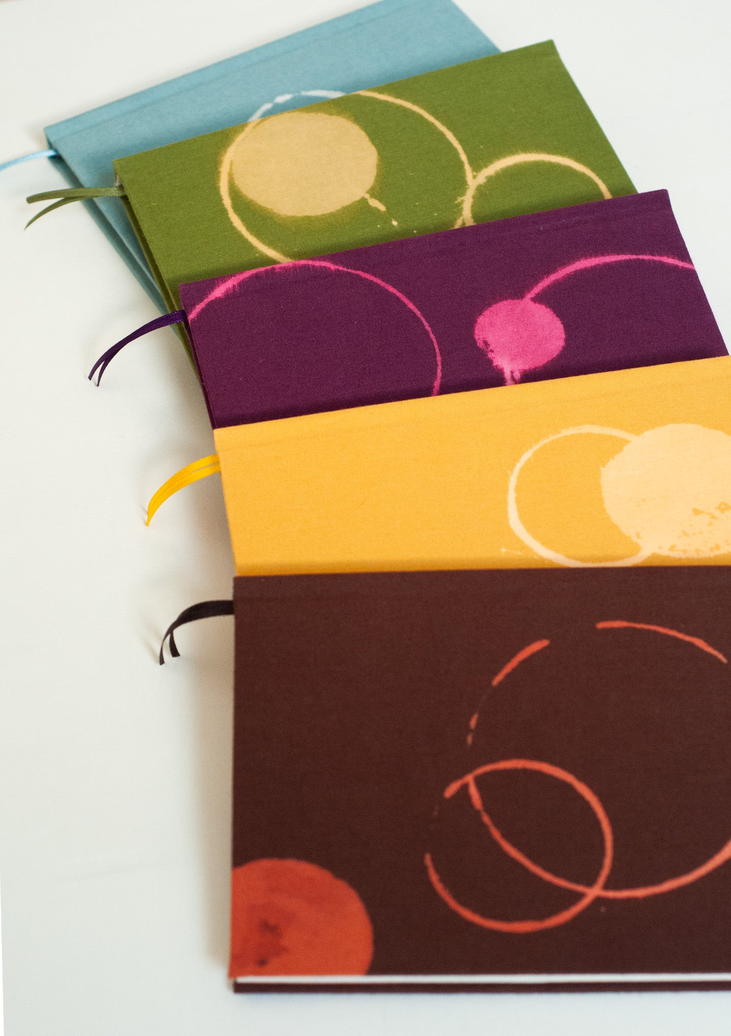 caderno artesanal com capa estampada manualmente em processo de carimbo com cloro utilizando fundos de copos e xicrinhas da cozinha de casa - é sempre uma peça única ✨