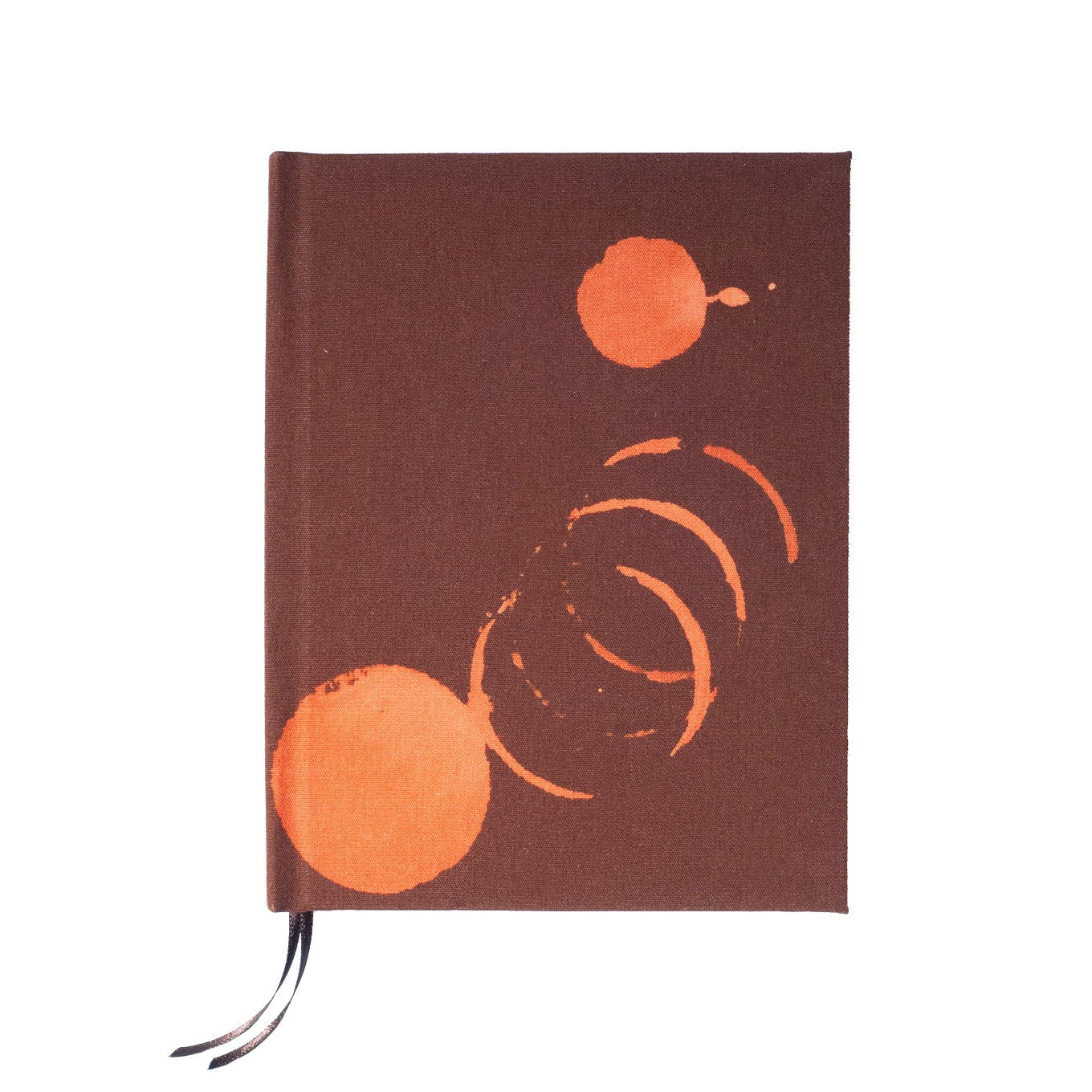 capa dura revestida em tecido 100% algodão | 13cm x 17cm | 96 páginas sem pauta em papel Pólen Bold 90g - livre de químicos e cor levemente amareladinha | guarda em papel Materica Terra Rossa 120g | duplo marcador de páginas em cetim