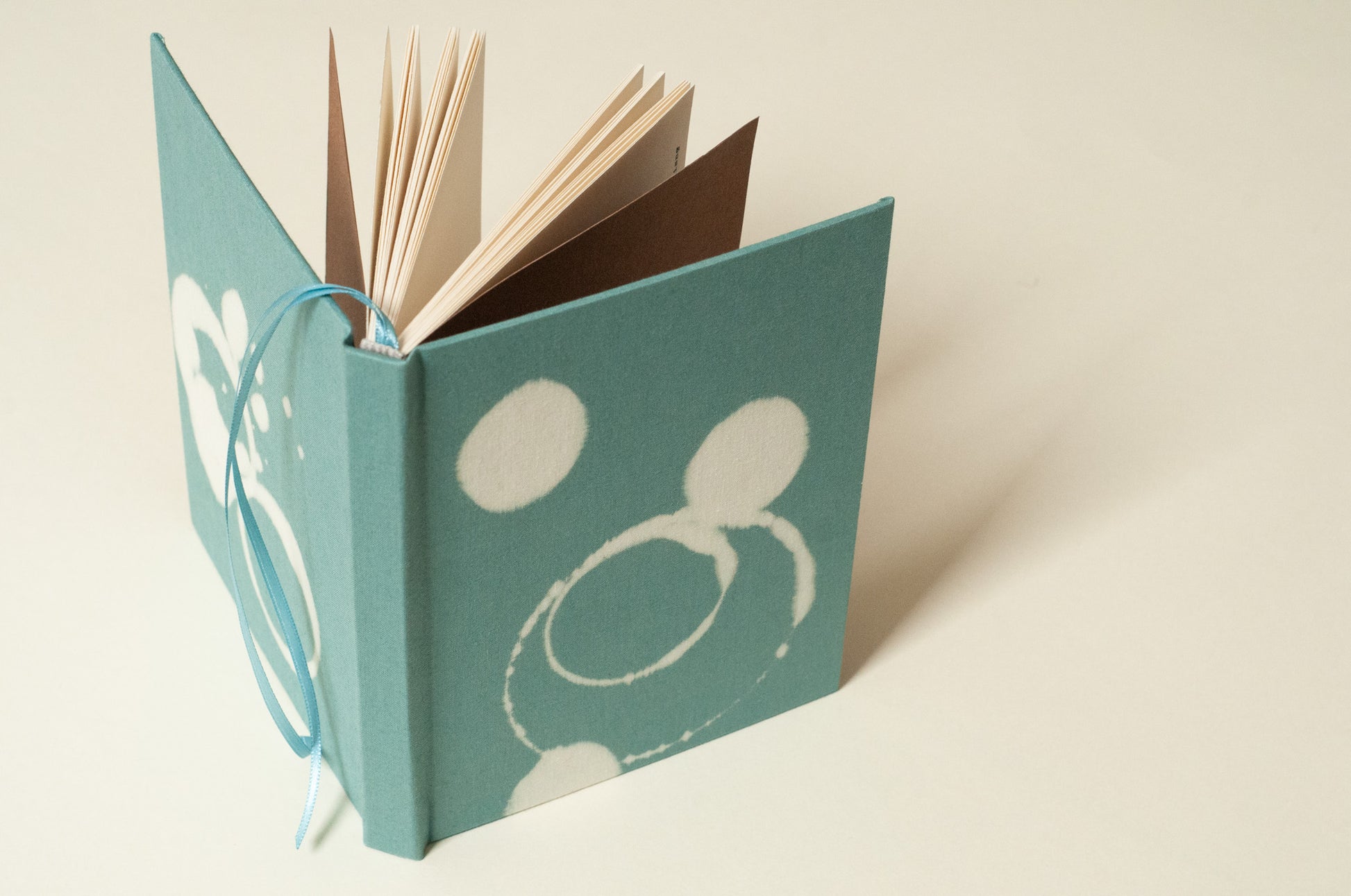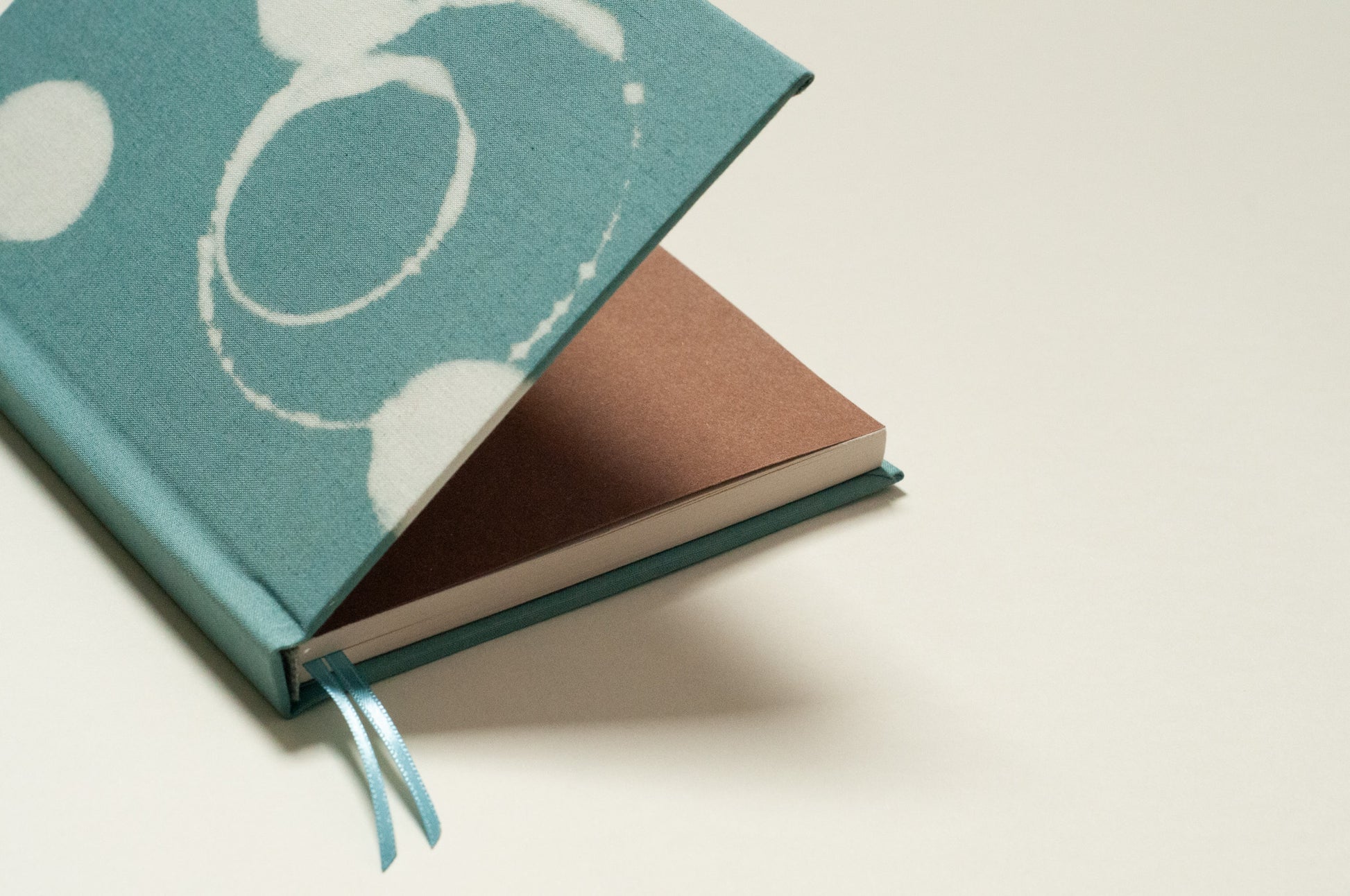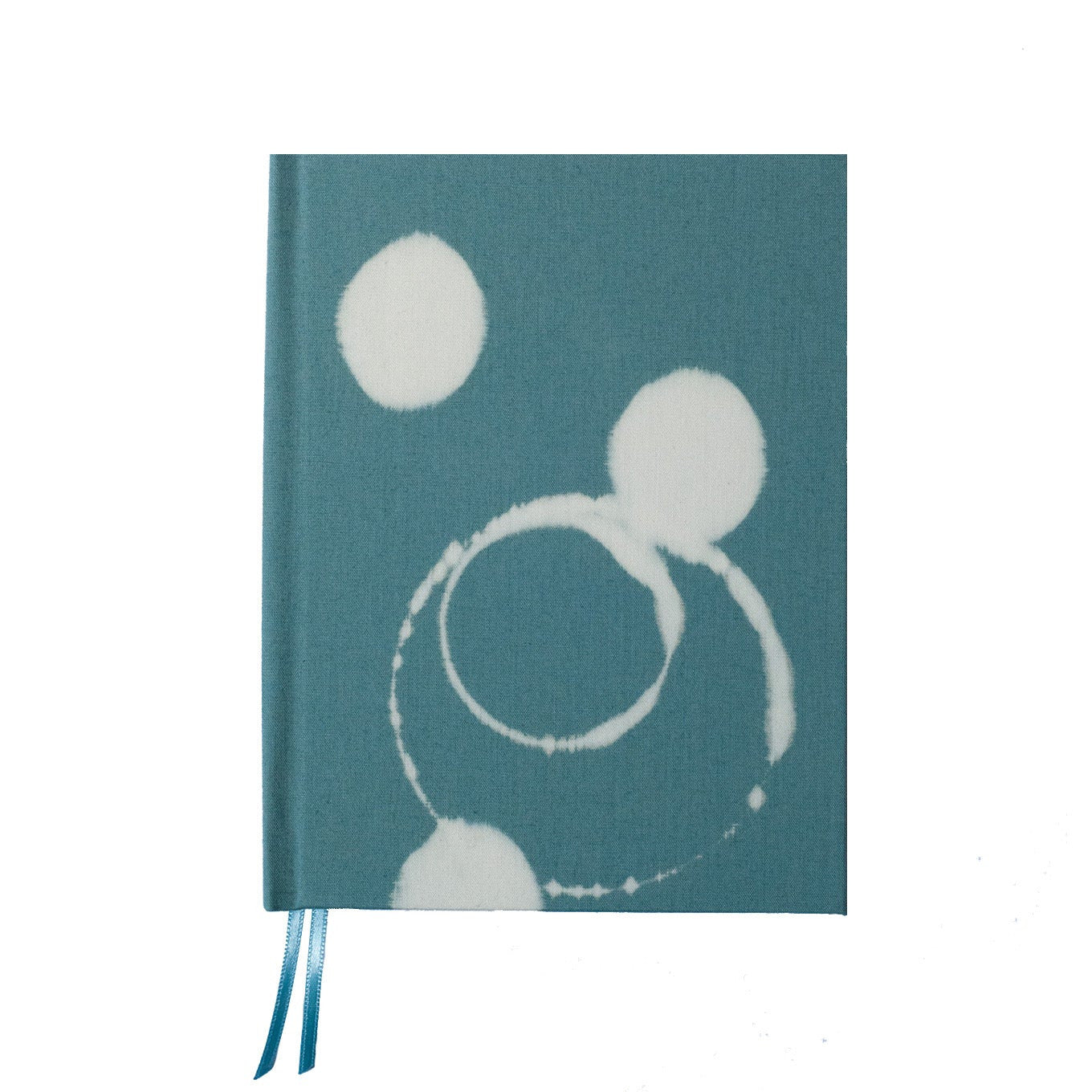 caderno artesanal com capa estampada manualmente em processo de carimbo com cloro utilizando fundos de copos e xicrinhas da cozinha de casa - é sempre uma peça única ✨