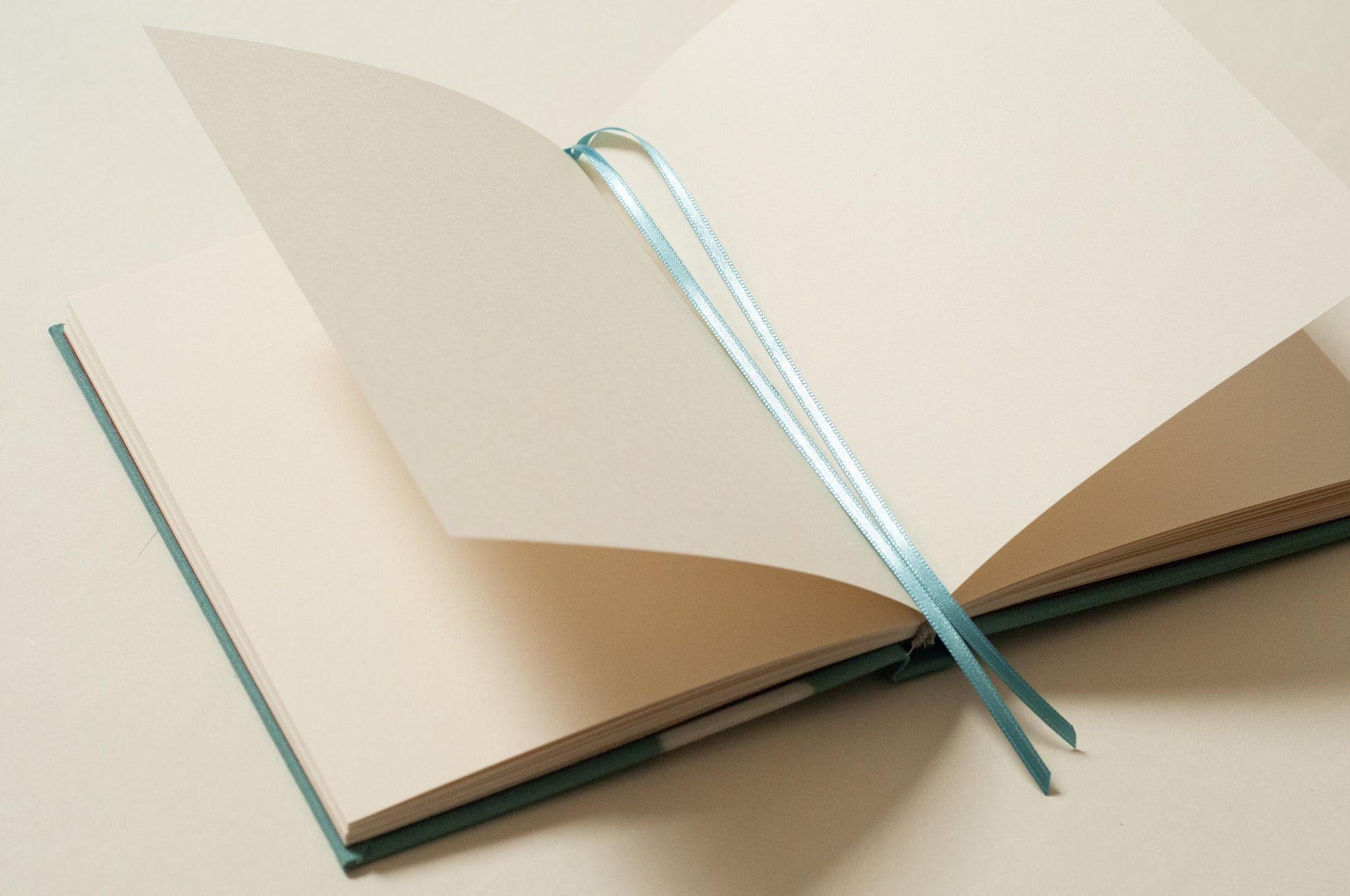 capa dura revestida em tecido 100% algodão | 13cm x 17cm | 96 páginas sem pauta em papel Pólen Bold 90g - livre de químicos e cor levemente amareladinha | guarda em papel Materica Rust 120g | duplo marcador de páginas em cetim