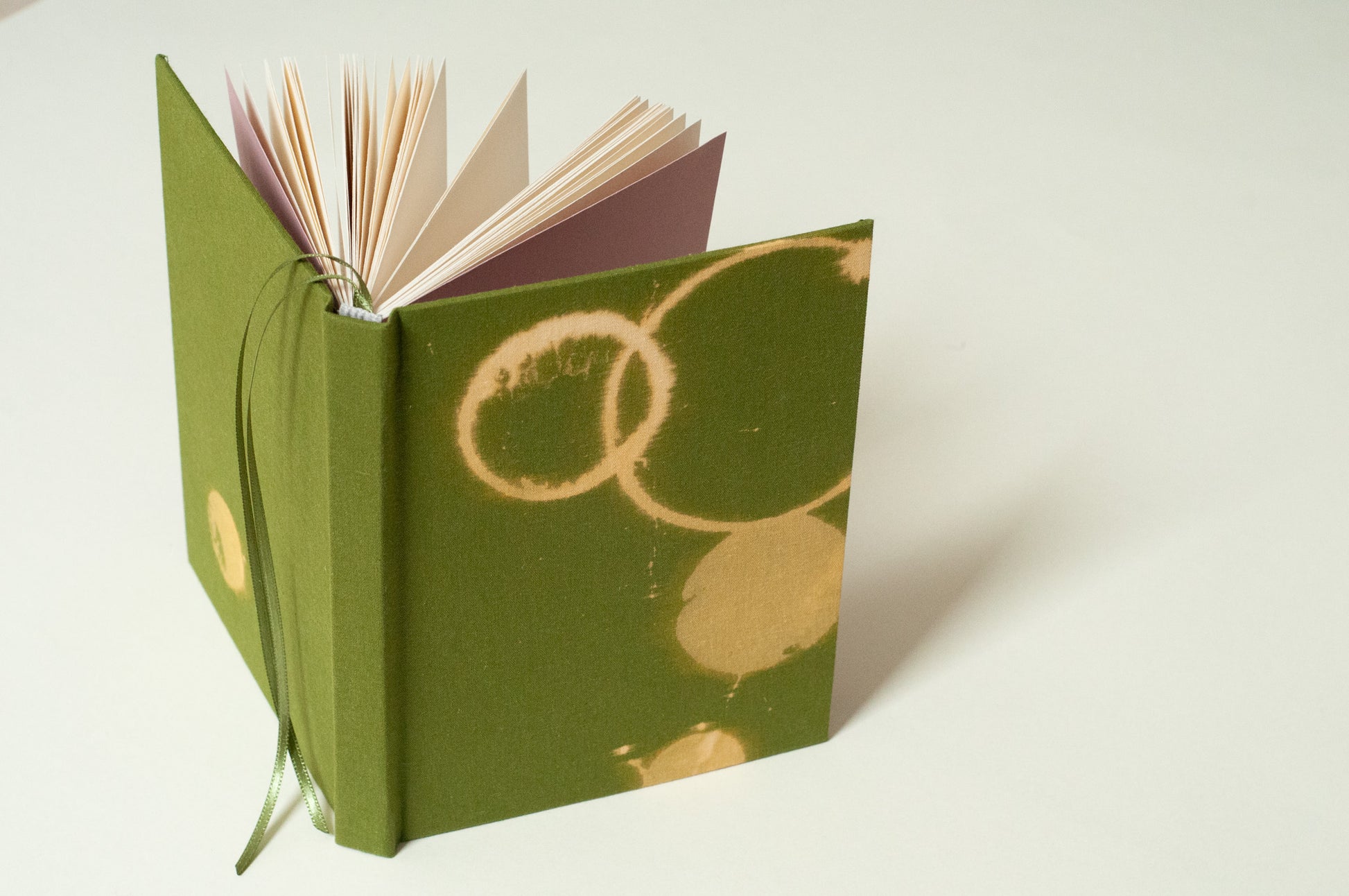 caderno artesanal com capa estampada manualmente em processo de carimbo com cloro utilizando fundos de copos e xicrinhas da cozinha de casa - é sempre uma peça única ✨